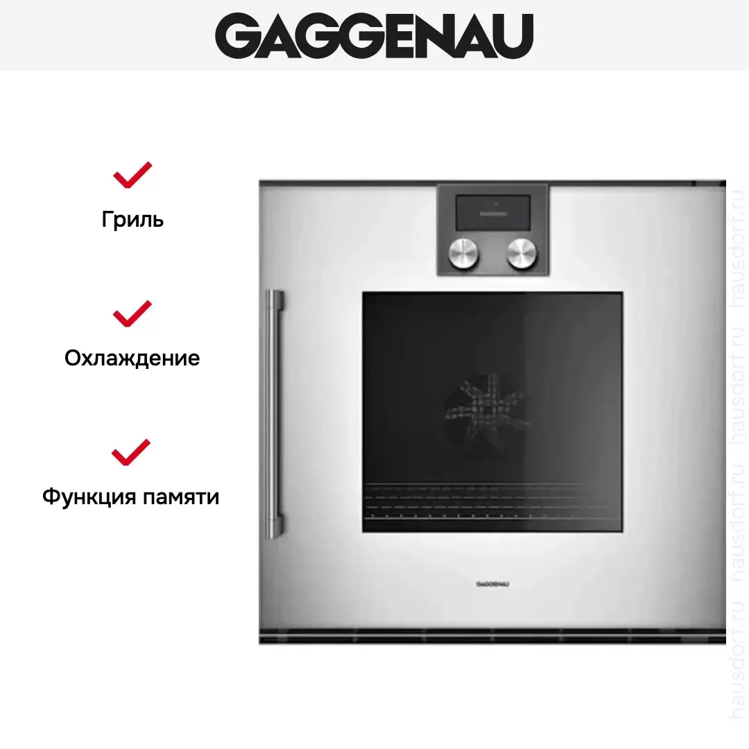 Количество режимов работы в духовом шкафу Гаггенау: 9. В число доступных программ входят: классический нагрев, верхний нагрев, нижний нагрев, конвекция, гриль для создания хрустящей корочки, пицца, и другие. Помимо основных программ воспользуйтесь специальными возможностями этого прибора: быстрым разогревом для ускорения работы; поддержанием температуры в камере на определенном уровне, чтобы блюда не остывали; и другими. Тип гриля в этой модели — электрический.