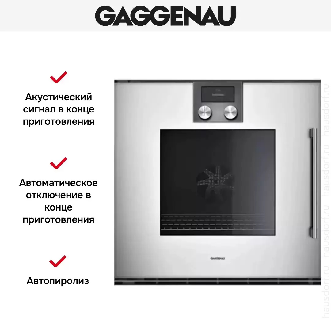 Количество режимов работы в духовом шкафу Гаггенау: 13. В число доступных программ входят: классический нагрев, верхний нагрев, нижний нагрев, конвекция, брожение, гриль для создания хрустящей корочки, пицца, и другие. Помимо основных программ воспользуйтесь специальными возможностями этого прибора: размораживанием продуктов, чтобы сократить время на подготовку; опцией автоматического поднятия теста; быстрым разогревом для ускорения работы; поддержанием температуры в камере на определенном уровне, чтобы блюда не остывали; и другими. Тип гриля в этой модели — электрический.