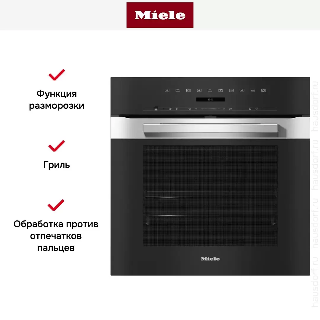 Духовой шкаф Miele H 7264 BP EDST/CLST обладает различными автоматическими программами, которые позволяют одним нажатием кнопки приготовить вкусные блюда. Сэкономит ваше время функция быстрого разогрева. В короткие сроки она доводит еду до нужной температуры. Установленный таймер позволяет устанавливать начало, продолжительность и завершение приготовления блюд. С помощью сенсорного управления DirectSensor S можно выбирать режимы приготовления. Помимо этого, благодаря индивидуальным установкам вы можете самостоятельно настраивать язык, яркость, дисплей и многое другое. Духовка объемом 76 литров имеет позволяет готовить на 5 уровнях. Вы можете выбрать приготовление при помощи верхнего и нижнего жара, гриля, конвекции, пара или любых их комбинаций.