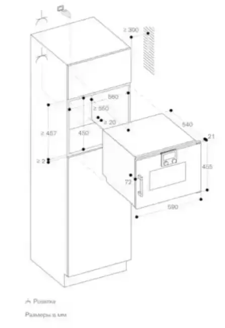 - Фасад прибора выступает на 21 мм от уровня мебели
