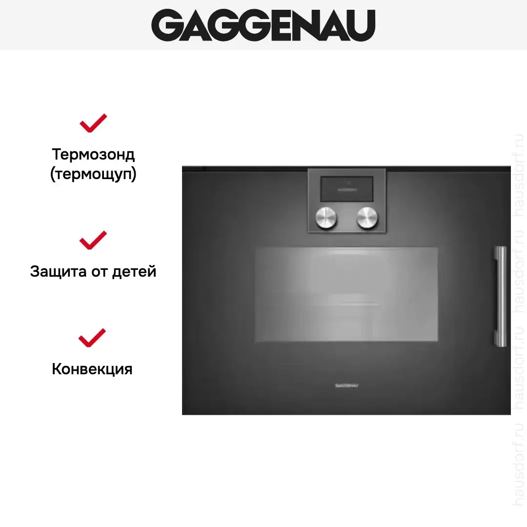 Духовой шкаф - пароварка Gaggenau BSP 261-101 обладает системами безопасности, которые осуществляют блокировку управления, защиту во время вашего отпуска и охлаждение корпуса в процессе приготовления. 40 автоматический программ расширяют возможности использования устройства. Функция разморозки сохраняет все вкусовые и полезные качества продуктов питания и позволяет начать готовку сразу, после завершения размораживания. С помощью большого гриля вы получите равномерно прожаренные блюда. Среди дополнительных преимуществ: