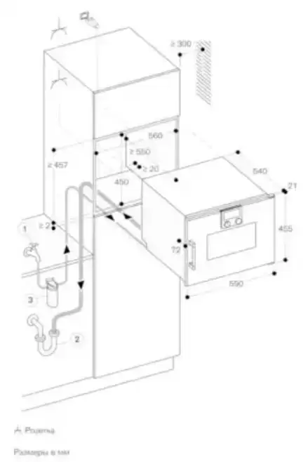 - Фасад прибора выступает на 21 мм от уровня мебели