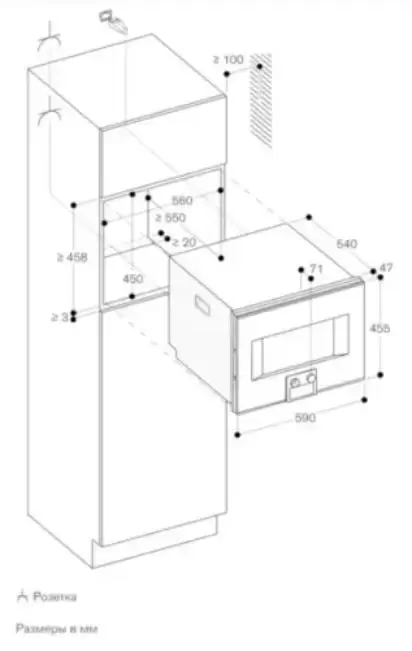 - Розетка для подключения прибора должна располагаться за пределами ниши для встраивания