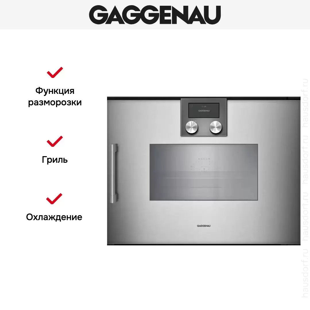 Встраиваемый духовой шкаф имеет дополнительные функции пароварки, поэтому вам доступны такие режимы приготовления, как Sous-Vide, горячий воздух с четырьмя уровнями влажности, гриль с несколькими ступенями влажности. Автоматическая очистка от загрязнений происходит с помощью картриджей, идущих в комплекте. Для удаления накипи необходимо приобрести комплект специальных таблеток. Фронтальная часть прибора располагается на уровне с установленной рядом мебелью, сделан из стекла и имеет термозащиту с дополнительным охлаждением, что повышает удобство использования и безопасность.