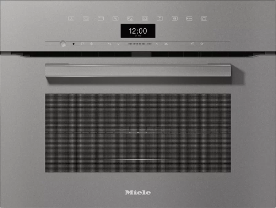 Духовой шкаф графитового цвета с функцией СВЧ, конвекцией и грилем. Вы можете использовать их отдельно или сочетать, включать автоматические режимы или программировать по времени. Камера покрыта эмалью PerfectClean, задняя стенка — каталитической, поэтому ее легко чистить.