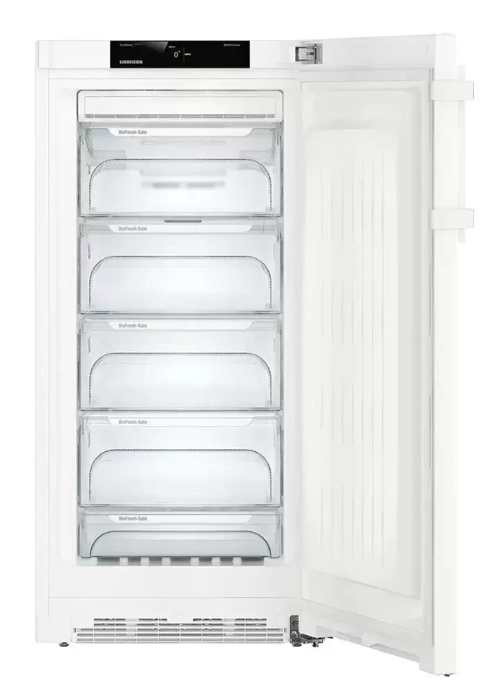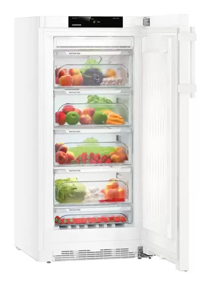 Модель высотой 125 см из серии BluPerformance идеально подойдет для дачи. Устройство отличают перенавешиваемая дверца, которая открывается на широкий угол до 115 градусов, транспортировочные ручки и ролики. Панель управления с 2,4-дюймовым сенсорным цветным TFT-дисплеем располагается за дверцей, на ней находятся индикатор температуры BioFresh-Safe, датчики открытой двери и сигнализация неисправностей. Автоматическое размораживание препятствует образованию льда на стенках камеры: для очистки ее достаточно просто протереть. Пять закрывающихся контейнеров BioFresh имеют прозрачный фронт для лучшего обзора. Система PowerCooling поддерживает стабильную температуру и гарантирует быстрое охлаждение по всей камере. Фильтр с активированным углем FreshAir встроен в вентилятор, он позволяет избавиться от посторонних запахов. О необходимости замены фильтра сообщает специальный индикатор. Модель может управляться дистанционно с мобильных устройств при дополнительной установке модуля SmartDeviceBox. Отпускной режим поможет сэкономить электроэнергию и предотвратить появление затхлого запаха, если дверца долгое время не открывается.