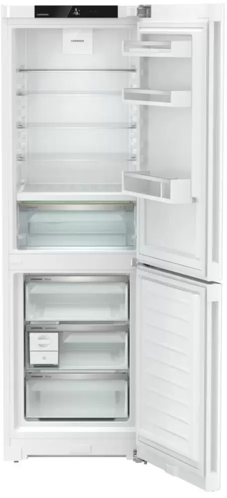 Liebherr CBNd 5223 Plus BioFresh NoFrost — отдельно стоящий холодильник с морозильной камерой снизу. Фронт изготовлен из стали, корпус окрашен в белый цвет. Секция Biofresh Plus служит для сохранения свежести продуктов без замораживания, она оснащена контейнерами на телескопических шинах, системой контроля влажности и собственным управлением.