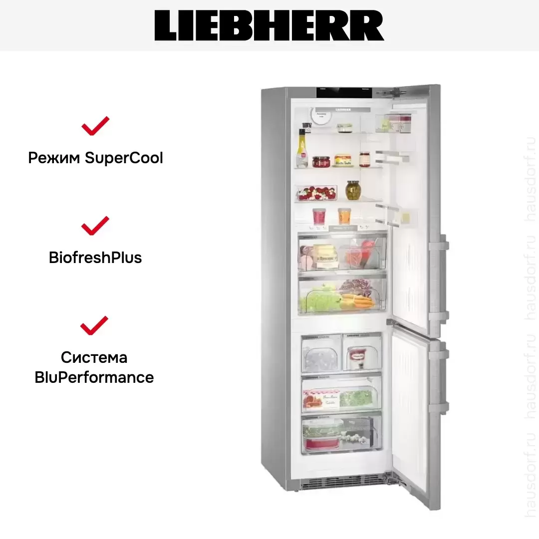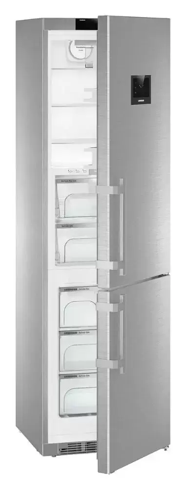 Liebherr CBNes 4898 — отдельностоящий двухкамерный холодильник. Оснащен зоной свежести BioFreshPlus с двумя ящиками на телескопических направляющих, где созданы оптимальные условия для долгого хранения овощей, фруктов, рыбы и мяса. Имеется ледогенератор IceMaker, способный производить до 1.2 кг льда в сутки. На покрытии SmartSteel не останется отпечатков пальцев и царапин.