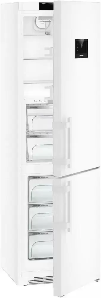Холодильник Liebherr CBNP 4858 Premium BioFresh NoFrost представлен в классической конфигурации — с нижним расположением морозильного отделения. Минусовая камера располагает тремя ящиками, которые удобно выдвигаются даже в заполненном состоянии. Благодаря прозрачному фронту можно легко определить, в какой секции находится нужный продукт. Сверху, помимо стандартного бокса для овощей и фруктов, присутствует зона свежести — специальное отделение с оптимальными условиями для длительного хранения. Стеклянные полочки легко переставляются по высоте — для этого на боковых стенках имеются специальные направляющие. На двери также организованы держатели, которые удобно использовать, например, для расположения бутылок, банок или упаковок. Среди преимуществ холодильника Либхер CBNP 4858 — автоматическое размораживание.