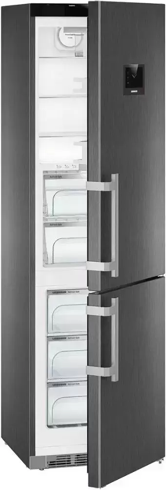 Холодильник Liebherr CBNPbs 4858 Premium BioFresh выполнен в лаконичном дизайне в цвете «черный металл». Цветной дисплей подчеркивает современный стиль модели, а также отображает фактическую температуру и информацию о настройках пользователя. Конструкция прибора предусматривает специальные функции: «Ночной режим», «Вечеринка», «Отпуск», «Покупки», что гарантирует комфорт эксплуатации.