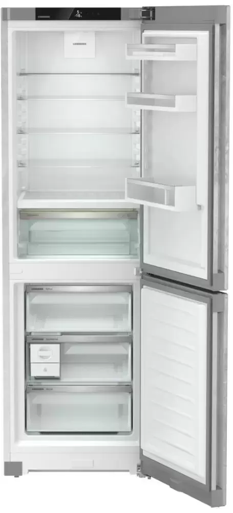 Холодильник Liebherr CBNpcd 5223 Plus представлен в необычном современном дизайне, который не только будет дополнять интерьер кухни, но и может стать его акцентным решением. Устройство располагает вместительной морозильной камерой снизу, а также ледогенератором, что расширяет возможности изделия. В холодильном отделении имеются стеклянные полочки — прочные и надежные, выдерживают большие нагрузки. В ящике удобно хранить овощи и фрукты. Кроме этого подвесные балкончики представлены на двери. Модель работает тихо, поэтому не создает дискомфорт для пользователей. Холодильник Либхер CBNpcd 5223 Plus оборудован специальными звуковыми сигналами и световыми индикациями, которые предупреждают о длительно открытой двери, а также об отключении электроэнергии. Дверной упор можно изменить с правого положения, на левое.