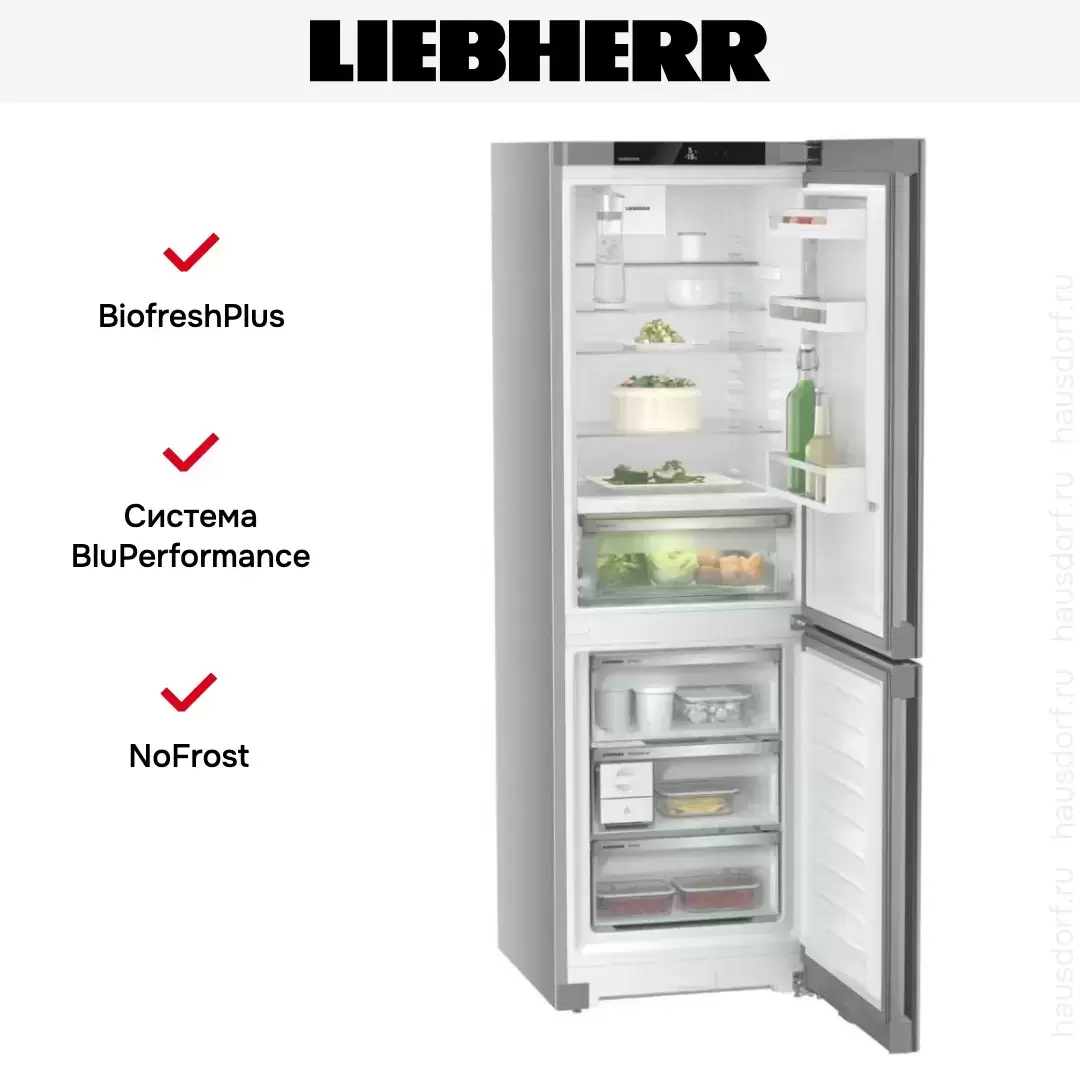 Liebherr CBNsfd 5223 Plus BioFresh NoFrost — отдельно стоящий прибор в корпусе стального цвета. Высота его составляет 185 см, объем — 339 литров. В холодильной камере расположена зона Biofresh Plus с контролем влажности и системой хранения овощей и фруктов Fruit&Vegetable-Safe. Контейнер в зоне свежести выдвигается на телескопических направляющих.