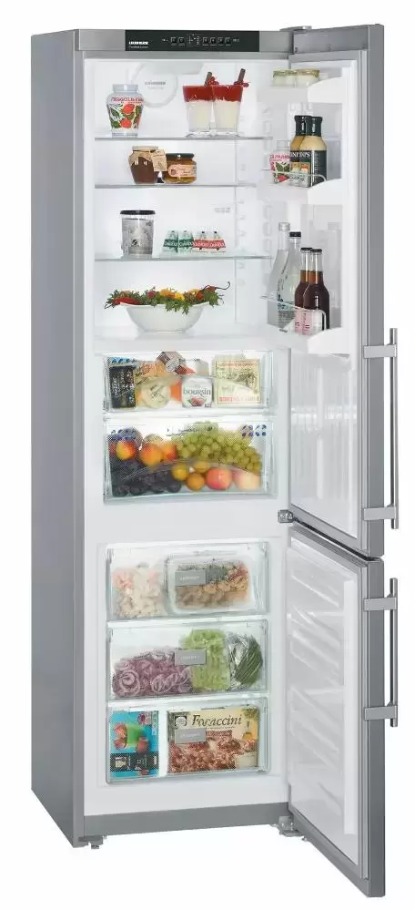 Холодильник Liebherr CBPesf 4033 выполнен из качественных материалов и представлен в цвете нержавеющая сталь. Устройство дополнено эргономичными ручками со встроенными толкателями для комфортного открытия. Классическая комбинация представляет собой две камеры, расположенные друг на другом. Нижнее положение занимает минусовое отделение с тремя прозрачными ящиками. Верхнее отделение дополнено зоной свежести, которая расширяет функциональные возможности и позволяет как можно дольше сохранять свежесть продуктов. Стеклянные полочки можно регулировать по высоте, что также является преимуществом, так как позволяет создать собственное зонирование. Холодильник Либхер CBPesf 4033 располагает внутренним освещением. Светодиоды не нагреваются во время работы, отличаются длительным сроком службы.