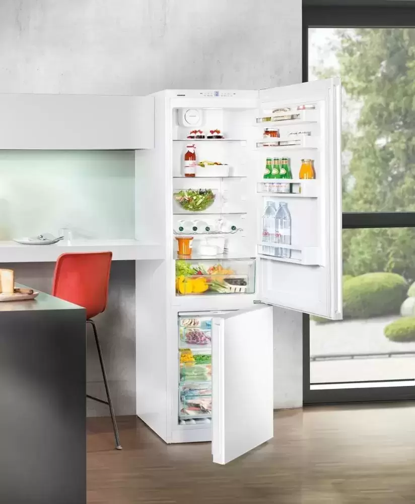 Liebherr CN 4813 NoFrost — двухкамерный холодильник отдельностоящего типа установки. Общего объема 368 литров и объема морозильной камеры 116 литров достаточно для комфортного хранения продуктов в семье из 3-4 человек. Универсальный дизайн HardLine с минимальным количеством деталей и вертикальной встроенной ручкой позволяет установить холодильник в кухне любого стиля. Корпус белого цвета изготовлен из прочной и устойчивой к изменениям температуры нержавеющей стали.