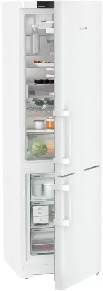 Холодильник высотой 201 см с морозильной камерой снизу. Отдельно стоящая модель имеет общий объем 383 литра. Морозильная камера объемом 94 литра с функцией суперзамораживания содержит три контейнера, которые можно легко удалить для размещения продуктов или упаковок большого размера. Обледенение на стенках отсутствует благодаря системе No Frost.