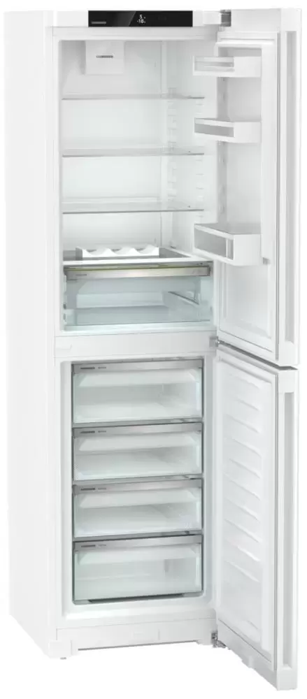 Холодильник Liebherr CNd 5704 Pure NoFrost — отдельностоящая модель, которая оборудована как холодильным, так и морозильным отделением с четырьмя вместительными ящиками. Прозрачный пластик обеспечивает комфортный обзор содержимого, поэтому нет необходимости открывать каждый в поиске нужного продукта. В верхней камере предусмотрены стеклянные полочки, держатель для бутылок, а также большой бокс, в котором удобно хранить овощи и фрукты. Электронное управление обеспечивает точную настройку параметров и поддержание установленных значений. Светодиодное освещение отличается долговечностью использования, а также отсутствием нагревательного эффекта во время работы, что в противном случае может привести к повышению температуры внутри камеры холодильника Либхер CNd 5704. Если дверь открыта дольше безопасного периода, то срабатывает звуковая и световая сигнализация.