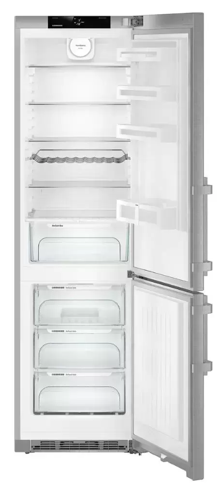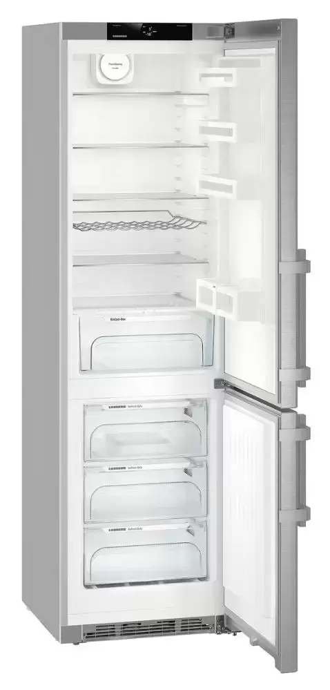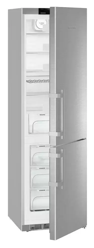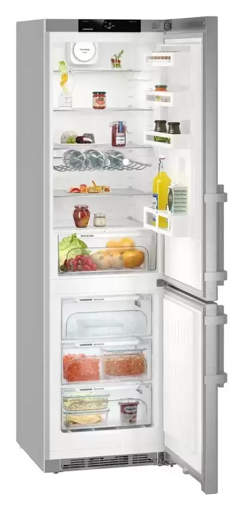 Liebherr CNef 4835 — отдельностоящий двухкамерный холодильник объемом 361 л. Предусмотрено отделение BioCool с регулировкой уровня влажности, где могут дольше храниться овощи и фрукты. Благодаря двум независимым холодильным контурам можно максимально точно установить температуру для холодильной и морозильной камер.