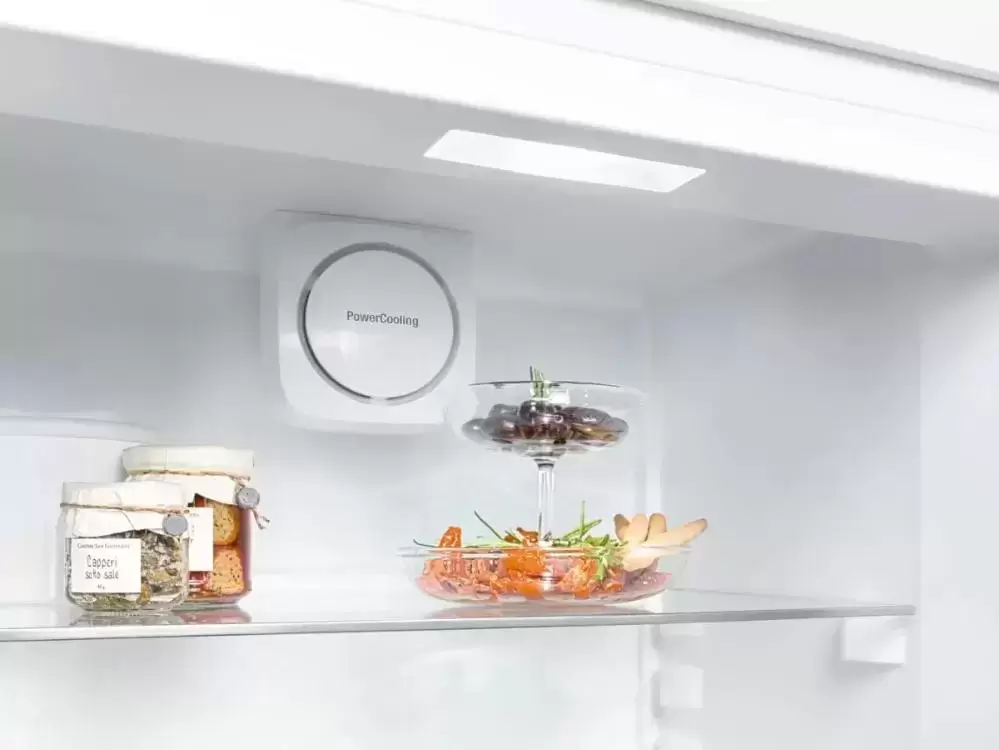 Электронная система управления с LED-дисплеем MagicEye с цифровой индикацией температуры и кнопками регулировки параметров находится за дверью и может блокироваться от случайного изменения настроек. Полки с регулировкой по высоте в холодильном отделении изготовлены из ударопрочного стекла. Морозильное отделение оснащено тремя полностью выдвигающимися контейнерами FrostSafe, прилегающими вплотную к стенкам. Производительность замораживания составляет 9 кг продуктов в сутки. Доступно автономное сохранение холода на протяжении 26 часов с момента отключения питания.