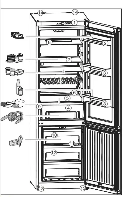 Модель высотой 186 см может устанавливаться вплотную к стене или в готовую нишу. Корпус серебристого цвета целиком выполнен из стали, а покрытие SmartSteel защищает его от отпечатков пальцев. Выровнять прибор при установке помогут регулируемые ножки. В холодильной камере расположены полки из ударопрочного стекла, которые можно легко переставить по высоте, большой ящик для фруктов и овощей и металлическая полка для бутылок. На дверце имеются 3 полки и отделение для хранения консервов. В морозильном отделении объемом 95 литров находятся плотно закрывающиеся ящики FrostSafe, сохраняющие холод при частом открывании дверцы. Если предстоит разместить большое количество свежих продуктов, можно воспользоваться режимом SuperFrost, быстро понижающим температуру. Время хранения продуктов при отключении электроэнергии составляет 26 часов, а производительность замораживания достигает 10 кг в сутки . Система полок и контейнеров VarioSpace предусматривает их легкое извлечение для размещения в морозильнике больших продуктов.