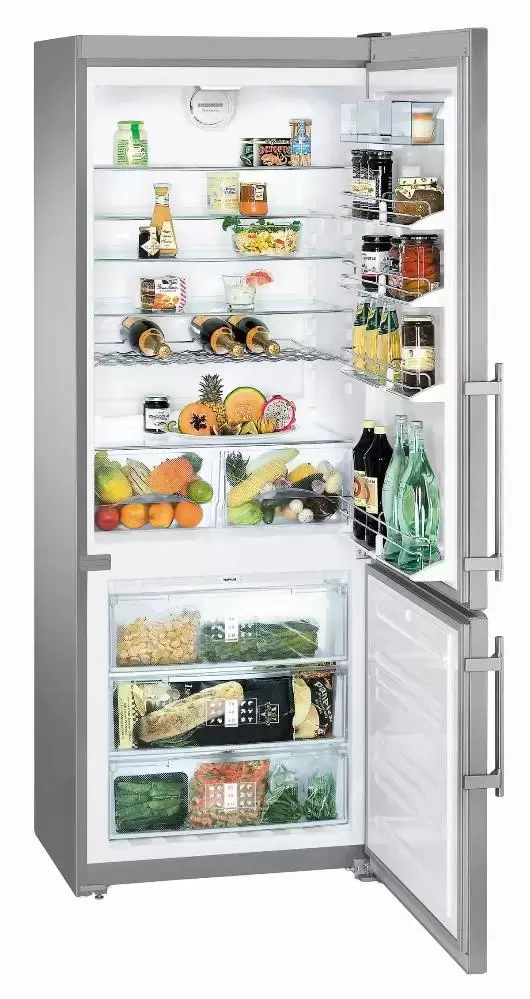 Холодильник Liebherr CNPes 5156 — отдельностоящая модель, которую можно легко переместить в случае необходимости. Для этого предусмотрены транспортировочные ролики, а для того, чтобы компенсировать неровности пола — регулируемые по высоте передние ножки. Преимущество изделия — в нестандартной ширине. Она отличается от классических вариантов на 15 сантиметров, что обеспечивает хорошую вместимость и идеальный обзор содержимого. Пластик в камерах хорошо очищается от загрязнений и препятствует образованию на поверхности вредоносных микробов и бактерий. В минусовой камера — три ящика, которые хорошо выдвигаются даже в наполненном состоянии. Холодильник Либхер CNPes 5156 не нужно размораживать вручную, так как используется технология НоуФрост. Среди функций безопасности — система индикаций и защита от детей.