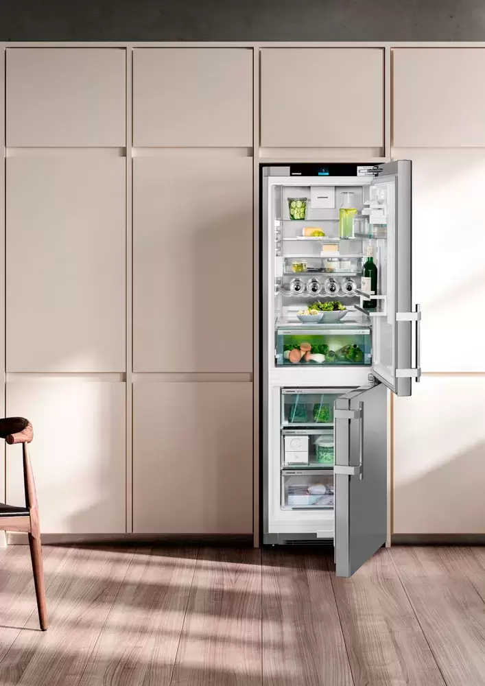 Холодильник Liebherr CNsdd 5253 Prime NoFrost — отдельностоящая модель от известного производителя бытовой техники. Прибор представлен в цвете нержавеющая сталь — универсальное решение для большинства интерьеров. Поверхность легко очищается от следов от рук, разводов и других загрязнений. Удобный и эргономичные ручки с толкателями обеспечивают легкое открытие. Внутри представлены полки с возможность регулировки по высоте, а также прозрачные боксы с легким выдвижением. Дополняет оснащение металлическая полка, на которую можно разложить бутылки. Благодаря электронному управлению обеспечивается точная установка температурного режима. Холодильник Либхер CNsdd 5253 не нужно размораживать, так как применена технология НоуФрост, которая предотвращает образование инея и льда. В комплект идет подробная инструкция.