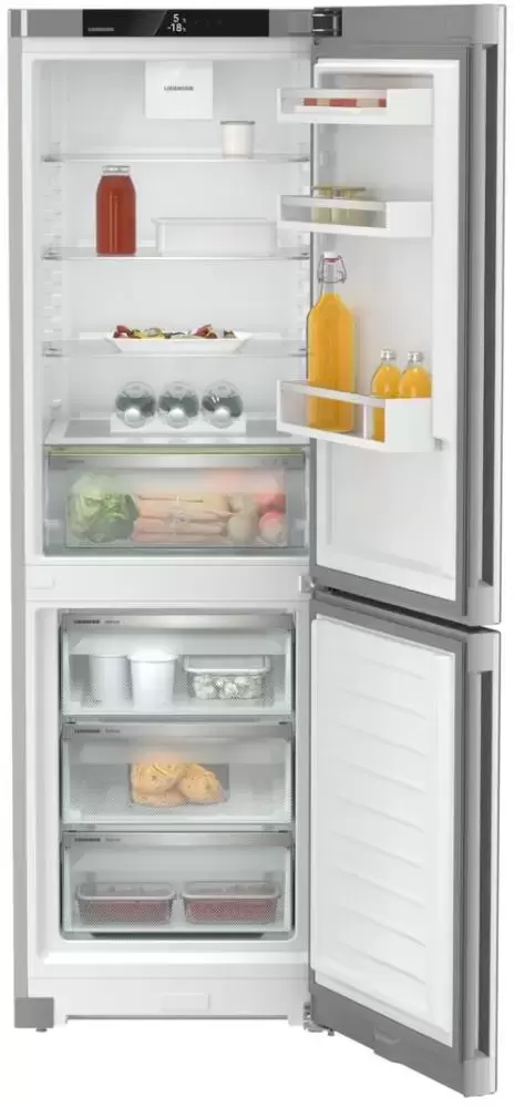 Liebherr CNsfd 5203 Pure NoFrost — большой холодильник европейского типа в серебристом корпусе в интегрированной ручкой. Фасад изготовлен из стали, морозильная камера объемом 94 литра расположена снизу. Высота устройства составляет 185 см, а ширина — 60 см: вентиляция через лицевую панель позволяет устанавливать его в нише, в том числе вплотную к стене.