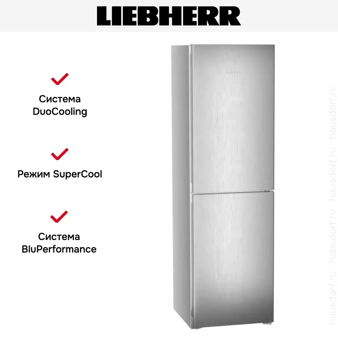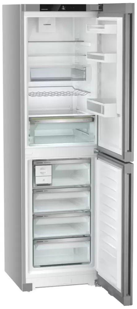 Liebherr CNsfd 5724 Plus NoFrost — отдельно стоящая модель высотой 201 см и общим объемом 370 литров в корпусе серебристого цвета. Стальной фронт гарантирует прочность конструкции. В холодильном отделении предусмотрено автоматическое размораживание, в нижней морозильной камере — система No Frost. Дверной упор может быть перенесен справа налево.
