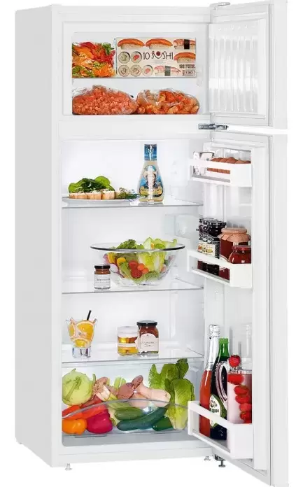 Холодильник Liebherr CT 2531 оборудован полками из закалённого стекла в обоих отделениях. Этот материал отличается устойчивостью к механическим повреждениям. Система SmartFrost препятствует образованию инея на замороженных продуктах и стенках прибора.