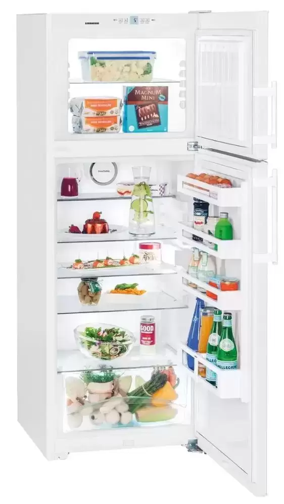 Модель в стальном корпусе объемом 286 литров с верхней морозильной камерой можно легко переместить благодаря транспортировочным ручкам и роликам. Дверные петли расположены справа, но сменить из положение достаточно просто. Регулируемые ножки позволят ровно установить прибор на выбранном месте. Для регулировки температуры и задания дополнительных параметров работы служит расположенная за дверцей электронная панель управления MagicEye класса Comfort с дисплеем и кнопками SoftTouch. Полки в холодильном отделении изготовлены из закаленного стекла и способны выдержать вес до 25 кг, часть их них можно переставить по высоте. Режим суперохлаждения SuperСool заблаговременно понизит температуру, если планируется загрузка большого количества свежих продуктов. Холодильное отделение размораживается автоматически, так что уход за ней не составляет труда. Морозильная камера способна заморозить до 6 кг продуктов в сутки, а при отключении электроэнергии холод сохраняется в течение 22 часов. Функция суперзамораживания SuperFrost с автоматическим отключением поможет заморозить продукты с полным сохранением их внешнего вида, структуры и полезных веществ.