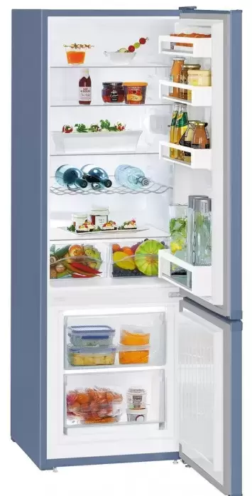 Холодильник Liebherr CUfb 2831 — классическая отдельно стоящая компактная модель высотой 161 см с морозильной камерой снизу. Оригинальность ему придают необычный цвет корпуса — «морозный синий» и фирменный дизайн SwingLine со скошенными углами. Прибор можно устанавливать вплотную к стене ради экономии места в кухне, встраивать в нишу и перенавешивать дверцу справа налево.