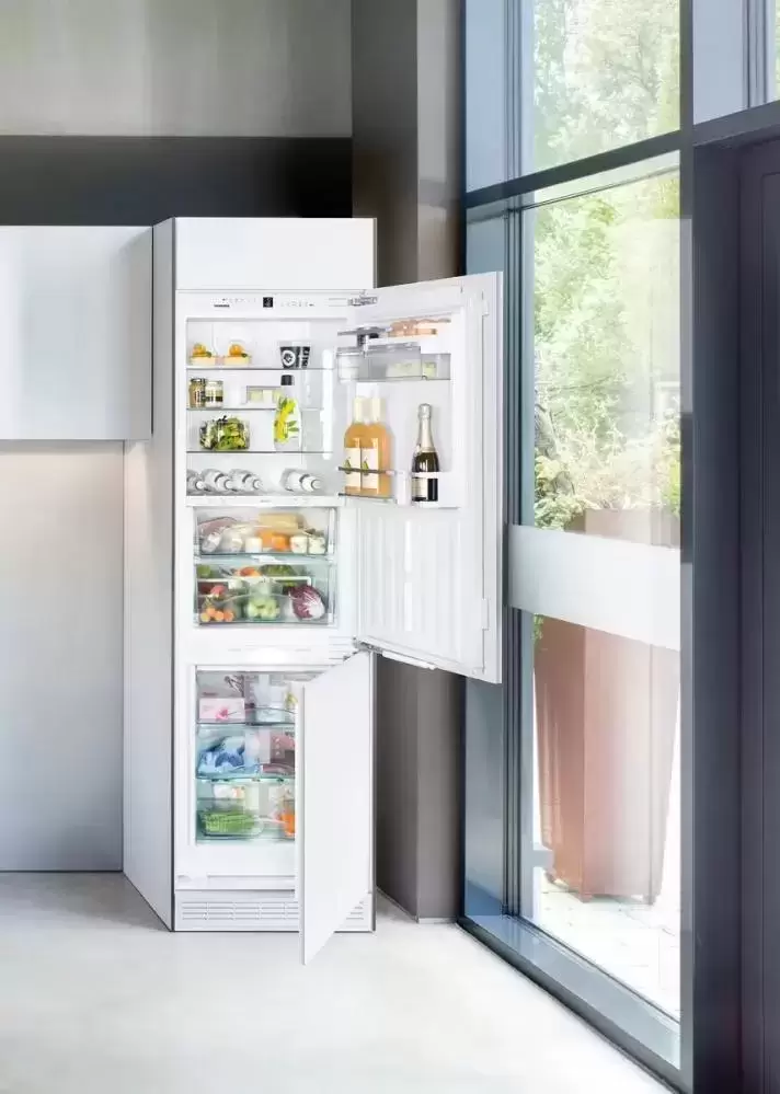Интегрируемая холодильно-морозильная комбинация с функциями BioFresh и NoFrost. Экономичный прибор оснащен ЖК-дисплеем MagicEye с цифровой индикацией температуры и сенсорным управлением. Дверь с доводчиком закрывается мягко и надежно. Зона свежести BioFresh на телескопических направляющих состоит из двух отделений: с пониженной влажностью Dry Safe и с повышенной HydroSafe. Регулируемые полки выполнены из закаленного стекла в дизайне Premium GlassLine. Средняя полка может складываться в двух положениях. Производительность замораживания составляет 10 кг продуктов в сутки.