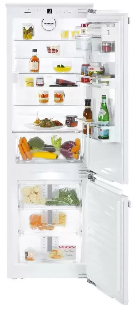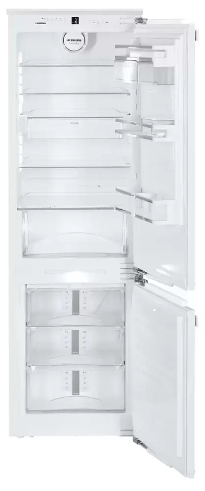 Вместительный двухдверный холодильник высотой 177 см и общим объемом 283 литра имеет правый дверной упор, который для удобства встраивания можно перенести налево. Благодаря светодиодной колонне с левой стороны содержимое отлично просматривается. Холодильная камера объемом 193 литра оснащена системой циркуляционного охлаждение PowerCooling, равномерно распределяющей охлажденный воздух и способствующей выравниванию температуры. Автоматический режим SuperCool снижает температуру, если планируется загрузка большого количества свежих продуктов. Камера оборудована системой хранения фруктов и овощей BioCool и контейнером VarioSafe для небольших продуктов или упаковок. Морозильная камера размораживается по системе NoFrost, предотвращающей образование инея на стенках. Режим SuperFrost с автоматическим отключением через 65 часов служит для снижения температуры перед размещением новой порции продуктов. Полностью выдвигающиеся на роликах контейнеры FrostSafe с прозрачной передней частью плотно прилегают к корпусу и лучше сохраняют холод, даже если дверца часто открывается. Возможно автономное сохранение холода в течение 20 часов.