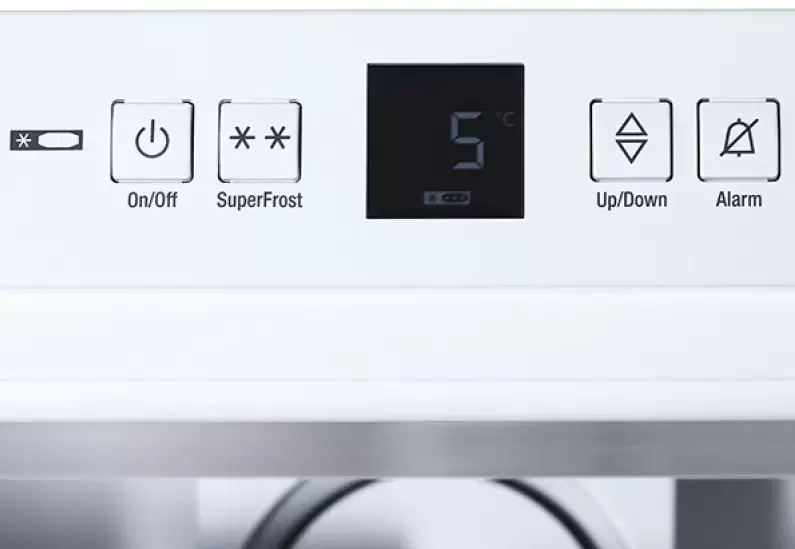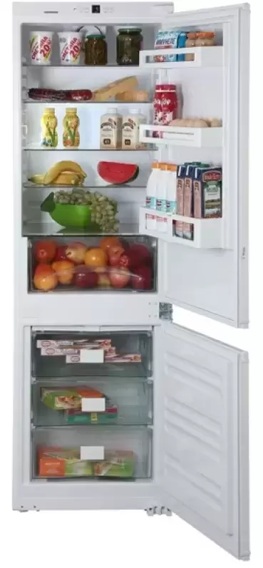 Вместительный интегрируемый прибор от известного производителя. Модель с электронной системой управления оснащена цифровым дисплеем, на который выводится информация о настройках и температуре в камерах. При любых нарушениях в работе — например, если дверь осталась открытой, — подается звуковой и световой сигнал. Система Bio Cool способствует долговременному хранению свежих продуктов без замораживания. Циркуляционная система охлаждения поддерживает одинаковую температуру по всему объему камеры. Благодаря автоматическому размораживанию обоих отсеков на стенках не образуется иней и лед. Возможно автономное сохранение холода в течение 15 часов после отключения электроэнергии.