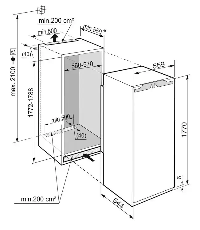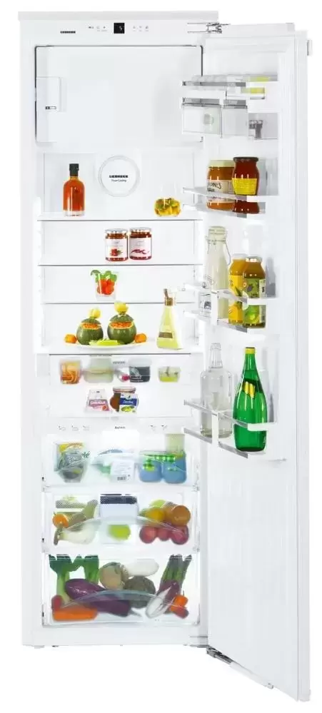 Модель высотой 177 см и объемом 321 литр отличается наличием одной дверцы и большой зоны свежести объемом 98 литров. Она понравится тем, кто предпочитает свежие, а не замороженные продукты. Мебельный фасад крепится жестко прямо на дверцу по системе door on door, так что угол открывания двери достигает 115°. Зона свежести BioFresh представляет собой два контейнера на телескопических шинах, которые гарантируют оптимальные условия хранения продуктов при температуре около нуля. Отделение Dry Safe с пониженным уровнем влажности подойдет для хранения мяса, рыбы, молочных продуктов. Отделение HydroSafe с увеличенным уровнем влажности поможет сохранить зелень, овощи и фрукты. В зоне свежести предусмотрено собственное светодиодное освещение. В холодильной камере с автоматической системой размораживания находятся пять регулируемых по высоте полок Premium GlassLine из высокопрочного стекла и ящик для овощей и фруктов. Режим SuperСool позволит быстро понизить температуру, если планируется загрузка большого количества продуктов. Морозильная камера с производительностью замораживания 2 кг продуктов в сутки может сохранять холод автономно в течение 17 часов.