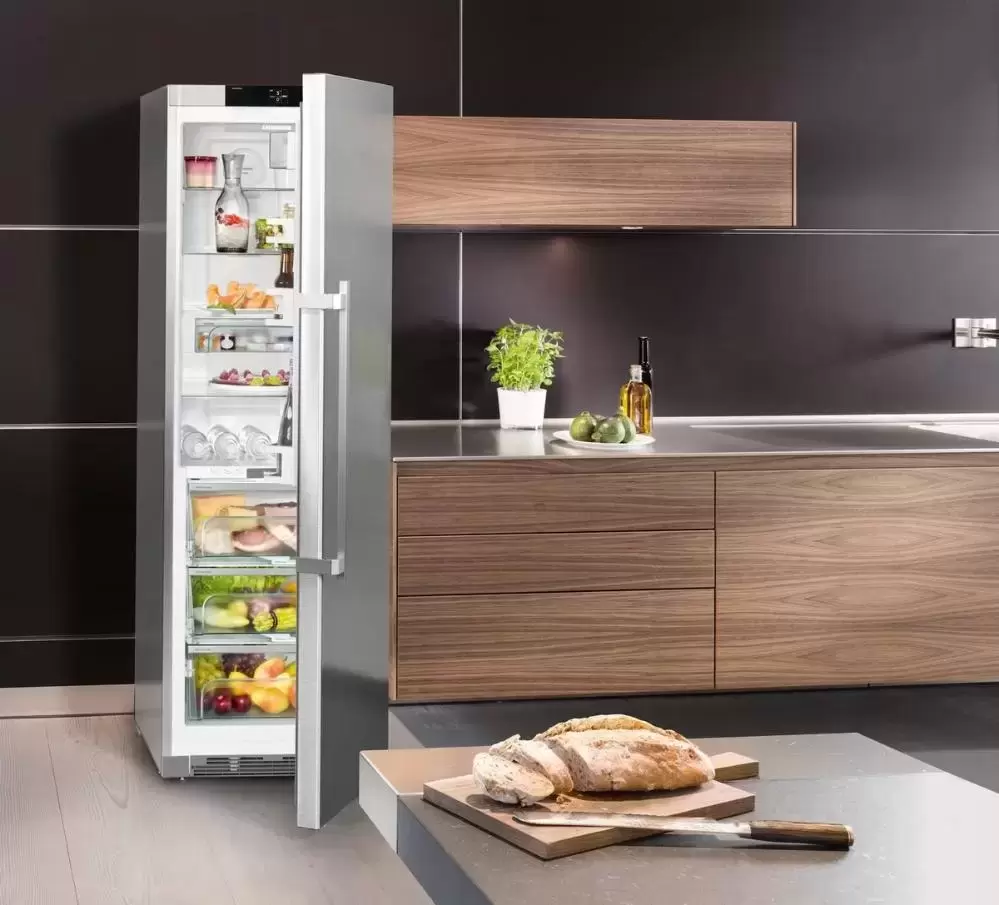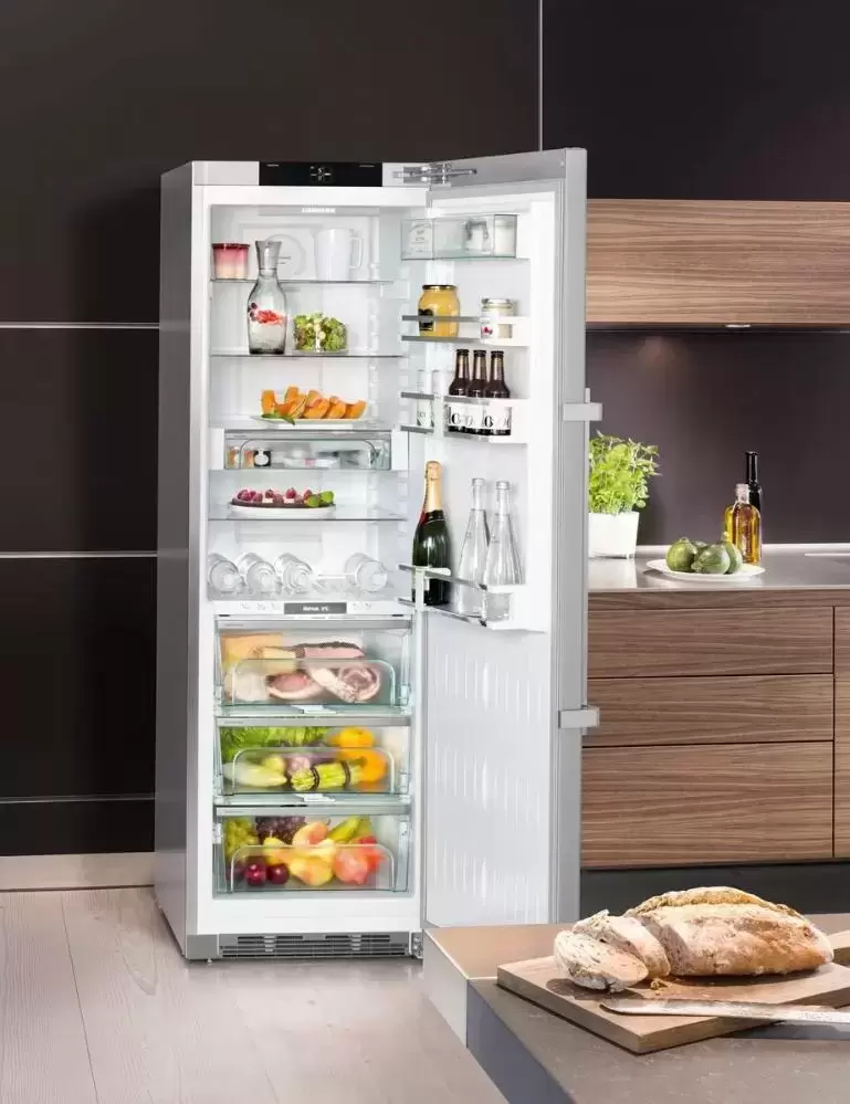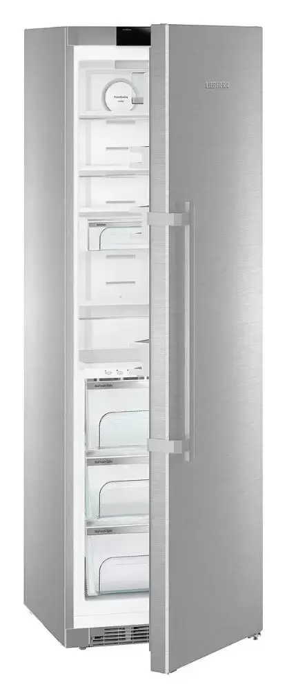 Liebherr KBies 4370 — однокамерный холодильник объемом 367 л. Оснащен зоной свежести BioFresh, где поддерживается температура чуть выше 0°C и идеальная влажность. Доводчик SoftSystem амортизирует движение двери, обеспечивая мягкое закрывание. Поверхность имеет покрытие SmartSteel, где не остается царапин и отпечатков пальцев.