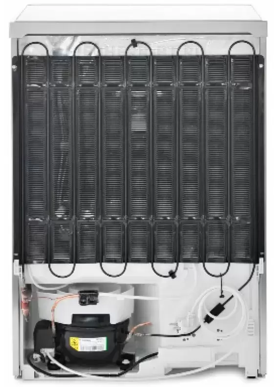 Эта модель словно уменьшенная копия больших и объемных вариантов. Есть все, что нужно: небольшая, но удобная морозильная камера, надежные и прочные полки и ящики для овощей и фруктов, лоток для приготовления кубиков льда и автономное сохранение холода. Такая удобная деталь, как различный монтаж двери, позволит разместить холодильник по усмотрению владельца практически в любой части комнаты.
