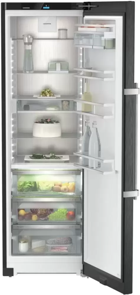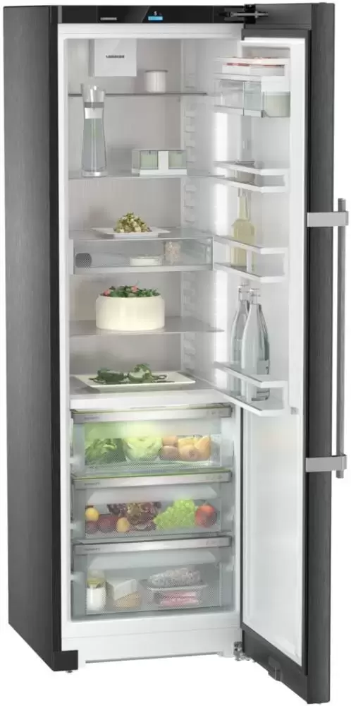 Liebherr RBbsc 5250 — отдельно стоящая модель без морозильника высотой 185 см и объемом 407 литров. Стальной корпус окрашен в цвет «черная сталь». Особенность холодильника — большая зона свежести из нескольких ящиков с различным уровнем влажности: для овощей и фруктов и для мыса и рыбы. Технология HomeDialog позволяет добавить устройство в домашнюю сеть.