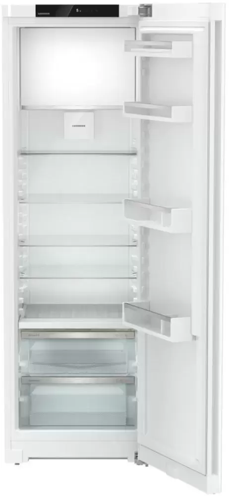 Liebherr RBe 5221 — холодильник с одной дверцей, небольшой морозильной камерой и вместительной зоной свежести BioFresh Plus. Два контейнера на телескопических шинах в зоне свежести предназначены для хранения продуктов при нулевой температуре и имеют разный уровень влажности. Дверца оснащена доводчиком и уплотнителем с возможностью легкой замены.