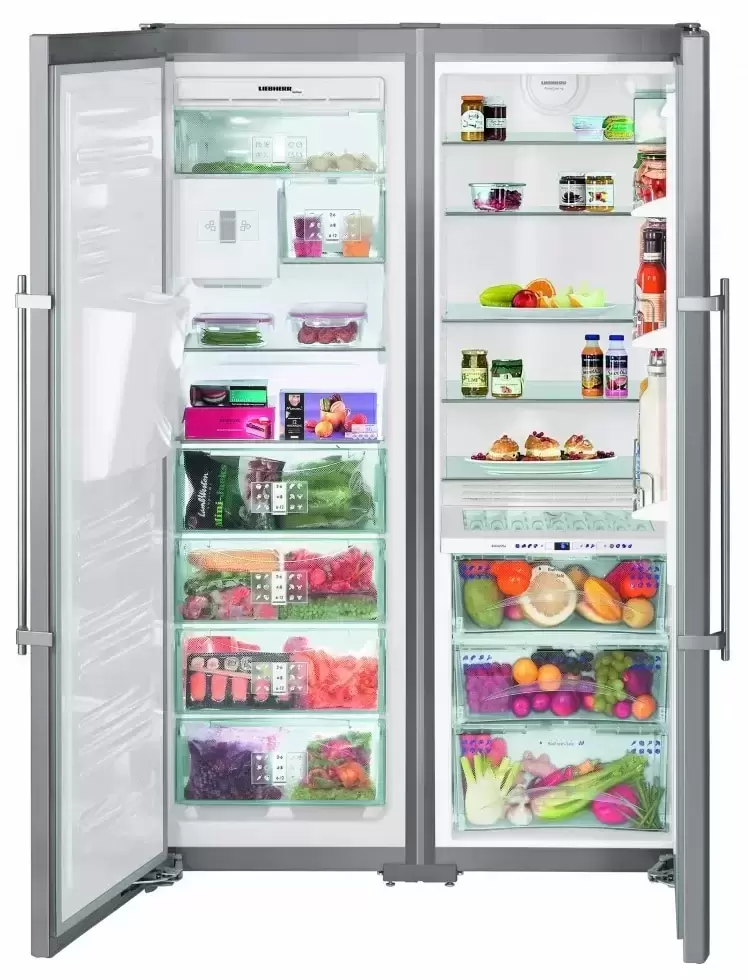 Холодильник Liebherr SBSes 8283 подойдет для большой семьи, так как отличается большой вместимостью. Прибор представляет собой распашную комбинацию из морозильного и холодильного отделений. Слева — минусовая камера, в которой представлены как ящики, так и полочки — все для комфортного расположения продуктов. Справа — холодильное отделение. Зона свежести состоит из трех боксов. В ней поддерживается оптимальная температура и влажность, что позволяет сохранять свежесть продуктов в течение длительного времени. Холодильник Либхер SBSes 8283 не нужно размораживать, так как применена технология НоуФрост. Ледогенератор расширяет функциональные возможности модели. Благодаря опциям суперохлаждения и суперзамораживания можно размещать одновременно большое количество свежих продуктов без риска повышения температуры.
