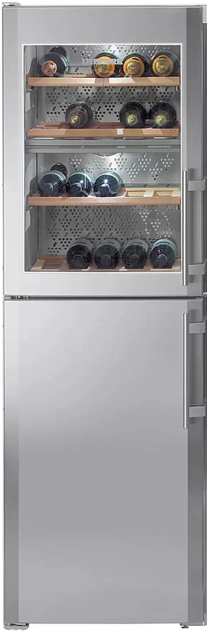 Холодильник Liebherr SWTNes 3010 Premium Plus NoFrost — нестандартное, но в то же время функциональное решение для кухни. Прибор состоит из винного шкафа сверху и морозильного отделения снизу. Корпус в цвете нержавеющая сталь смотрится элегантно и стильно, подойдет для многих интерьеров. Винный шкаф дополнен стеклянной дверцей с защитой от ультрафиолетового излучения, что особенно важно при хранении напитков. Деревянный полочки позволяют располагать бутылки горизонтально или по углом — что актуально для открытых вин или в качестве демонстрации. В морозилке — 5 вместительных ящиков, которые легко выдвигаются, если заполнены по максимуму. Благодаря системе НоуФрост холодильник Либхер SWTNes 3010 не требует разморозки. Наличие разнообразных защитных индикаций повышает уровень безопасности при эксплуатации прибора.