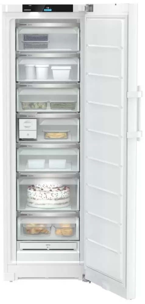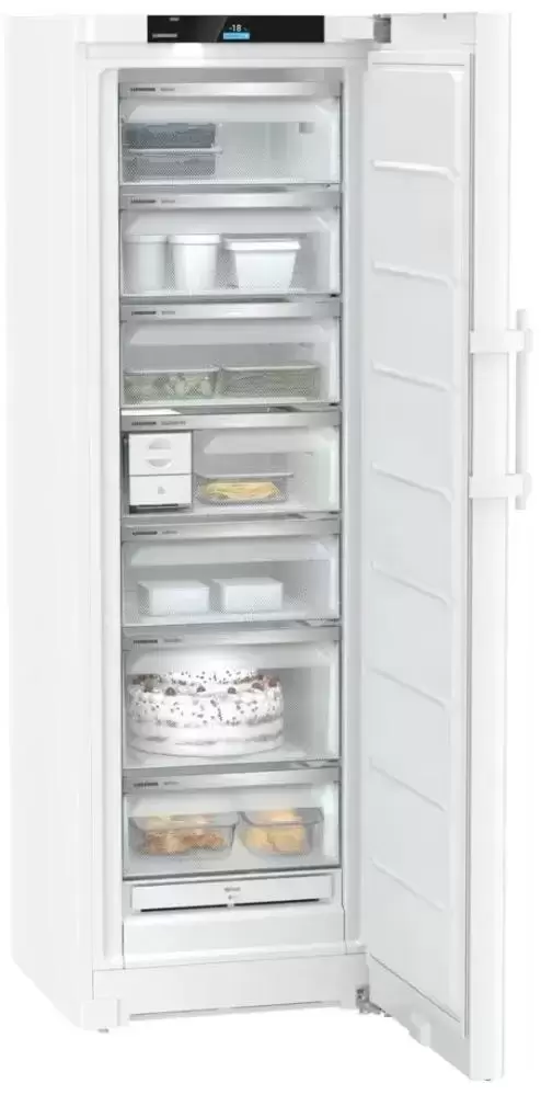 Морозильная камера Liebherr FNc 5277 Peak NoFrost обеспечивает длительное хранение продуктов. Внутри камеры поддерживается температурный режим в диапазоне от ?15 до ?28 градусов. Свежие мясо, овощи, рыба быстро замораживаются. При необходимости можно воспользоваться опцией суперзамораживания, которая особенно актуальна при расположении большого количества свежих продуктов — таким образом температура внутри отделения не повысится и не будет риска оттаивания. Светодиодное освещение — еще одно полезное дополнение, которое упрощает процесс эксплуатации. В морозильной камере Либхер FNc 5277 применена технология НоуФрост, поэтому процесс облуживания не занимает много времени — устройство не требует ручной разморозки. Изделие можно установить вплотную к стене. Контейнеры легко выдвигаются из камеры за счет направляющих.