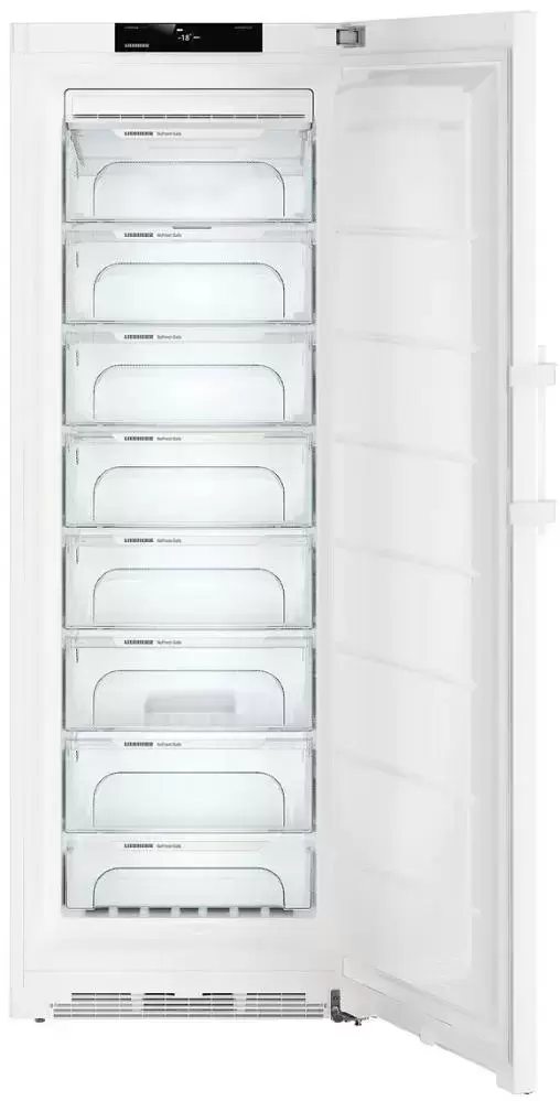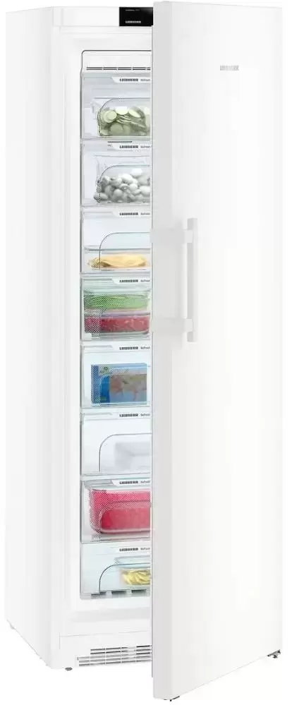Высота 195 см и ширина 70 см делают этот холодильник хорошим выбором для просторной кухни. Ручка со встроенным толкателем не только дополняет общее впечатление, но и позволяет плотно закрывать дверцу без усилий. При больших габаритах модель отличает малое потребление электроэнергии — о нем свидетельствует класс энергетической эффективности A++. Внутреннее светодиодное освещение экономично и не требует частой замены ламп. Система Vario позволяет без труда извлекать все полки и контейнеры, если необходимо размещение крупных продуктов или больших упаковок. Для поддержания низкой температуры продуктов при отключении электропитания служат два аккумулятора холода: возможно автономное сохранение холода в течение 20 часов. Опция FrostControl позволяет сохранить в памяти значение максимальной температуры в камере, чтобы после включения можно было принять решение о дальнейшем хранении продуктов. Производительность замораживания составляет 26 кг продуктов в сутки. Морозильник может быть оснащен новейшей системой SmartGrid ready, которая позволяет автоматически увеличить интенсивность охлаждения в часы с самым низким тарифом на электроэнергию.