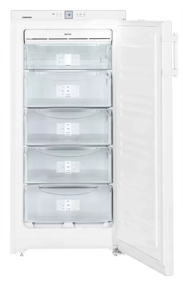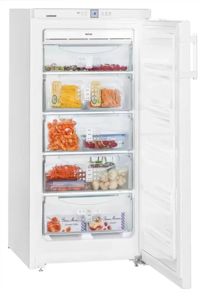 Отдельно стоящий морозильник высотой 125 см и объемом 187 литров изготовлен в дизайне Swing. Корпус целиком выполнен из нержавеющей стали, ручка оснащена встроенным толкателем. Прибор может устанавливаться вплотную к стене или в готовую нишу. Система размораживания NoFrost исключает образование льда и инея на стенках камеры, так что для очистки поверхность достаточно просто протереть. Производительность замораживания достигает 15 кг продуктов в сутки, при отключении электропитания поддерживается сохранение продуктов в замороженном виде в течение 14 часов благодаря двум аккумуляторам холода. Автоматический режим суперзамораживания SuperFrost с отключением через 65 часов быстро понижает температуру, если предстоит загрузка большого количества свежих продуктов одновременно. Продукты замораживаются с полным сохранением полезных веществ и витаминов, при этом ранее заложенные на хранение продукты не размораживаются. Прибор оснащен пятью закрытыми контейнерами с прозрачной передней частью, которая обеспечивает обзор содержимого. Система Vario позволяет извлекать контейнеры и полки, если требуется больше места для размещения продуктов.