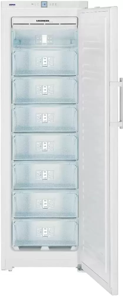 Отдельно стоящая морозильная камера Liebherr GNP 3056 Premium NoFrost — полноразмерное устройство высотой 184 см и шириной 60 см, которое можно устанавливать вплотную к стене. Ее объем составляет 304 литра — этого достаточно для хранения большого запаса продуктов. Стальной корпус глянцевого белого цвета и ручка с встроенным толкателем придают ему стильный современный вид. Климатический класс SN гарантирует стабильную работу при наружных температурах от + 10 до +43°С.