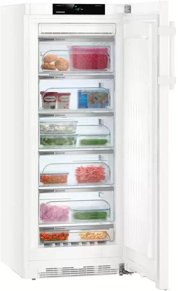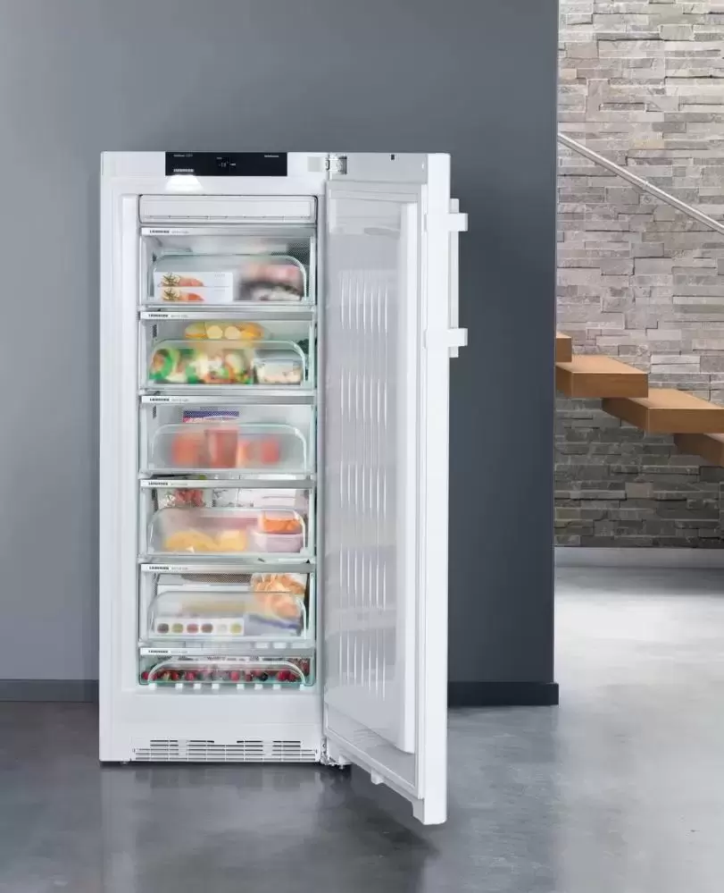 Морозильник Liebherr GNP 3255 Premium NoFrost — небольшая, но вместительная модель с хорошим полезным объемом. Для комфортного расположения продуктов предусмотрены боксы с прозрачным фронтом, через который удобно просматривать содержимое. Электронная панель управления представлена сенсорными кнопками и дисплеем. Небольшое количество элементов обеспечивают простоту при настройке параметров работы. Прибор представлен в классическом белом цвете. Лаконичный корпус дополнен накладной рукой со встроенным толкателем. Внутреннее освещение — полезное дополнение, которое создает дополнительный комфорт при эксплуатации. Морозильник Либхер GNP 3255 не нужно размораживать, так как в нем предусмотрена система НоуФрост, которая препятствует образованию льда, инея, снега. В комплекте также представлена интрукция.