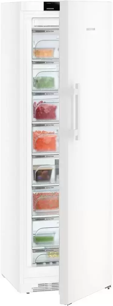 Морозильник Liebherr GNP 4355 Premium NoFrost — отдельно стоящая модель высотой 185 см и объемом 315 литров. Прибор в стальном корпусе белого цвета можно установить вплотную к стене. Для регулировки параметров работы служит система управления MagicEye класса Premium с 2,4-дюймовым сенсорным цветным TFT-дисплеем. Система размораживания No Frost препятствует появлению наледи на стенках камеры. Система SmartDevice позволяет управлять работой устройства удаленно.