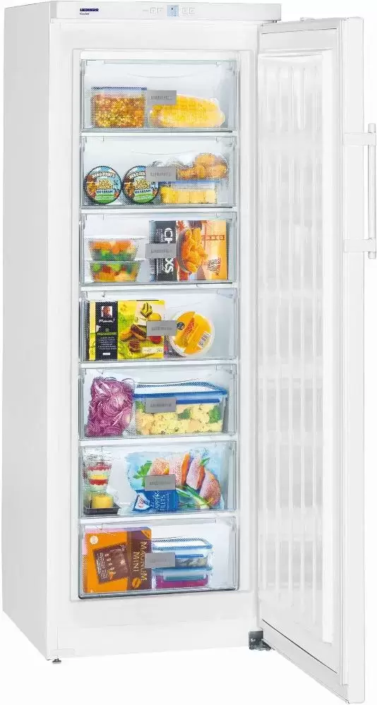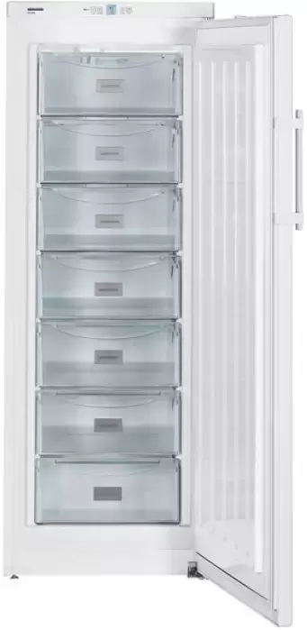 Морозильник Liebherr GP 2733 Comfort предназначен для длительного бережного хранения продуктов. Для этого представлены вместительные прозрачные ящики. Они легко выдвигаются даже в заполненном состоянии. Простое и понятное управление обеспечивает быструю настройку параметров работы. За безопасную эксплуатацию отвечает также специальная сигнализация, которая оповещает пользователя о неисправностях. Благодаря цифровому термометру легко следить за температурным режимом внутри камеры. Прибор оборудован регулируемыми ножками, которыми позволяют установить устройство по уровню, что особенно важно для тихой работы. Морозильник Либхер GP 2733 Comfort оснащен функцией суперзамораживания, благодаря которой можно располагать большое количество свежих продуктов без риска повышения общей температуры.