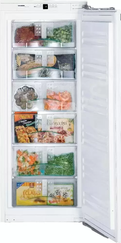 Идеальный вариант крупногабаритного морозильного шкафа с возможностью встраивания. Модель отличается эргономичностью, как нельзя более подходит для домохозяек, которые хотят сохранить приготовленные блюда свежими. Преимущество данной модели состоит еще и в том, что ее пользователи всегда смогут о том, что дверь холодильника не закрыта, благодаря наличию специального индикатора.