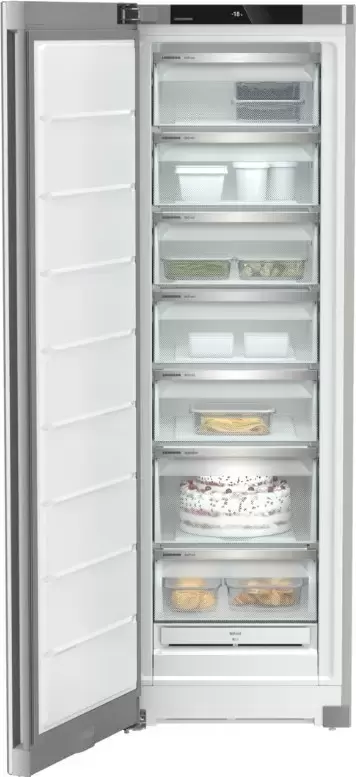 Морозильник Liebherr представляет собой прекрасное сочетание функциональности и стильного дизайна. Внешний вид устройства оформлен в современном стиле Plus с использованием серебристого цвета, что придаёт ему элегантность и современность. Корпус выполнен из качественной стали, что гарантирует надёжность и долговечность, имеет обработку против отпечатков пальцев, что облегчает уход за ним и позволяет сохранить его внешний вид в идеальном состоянии.