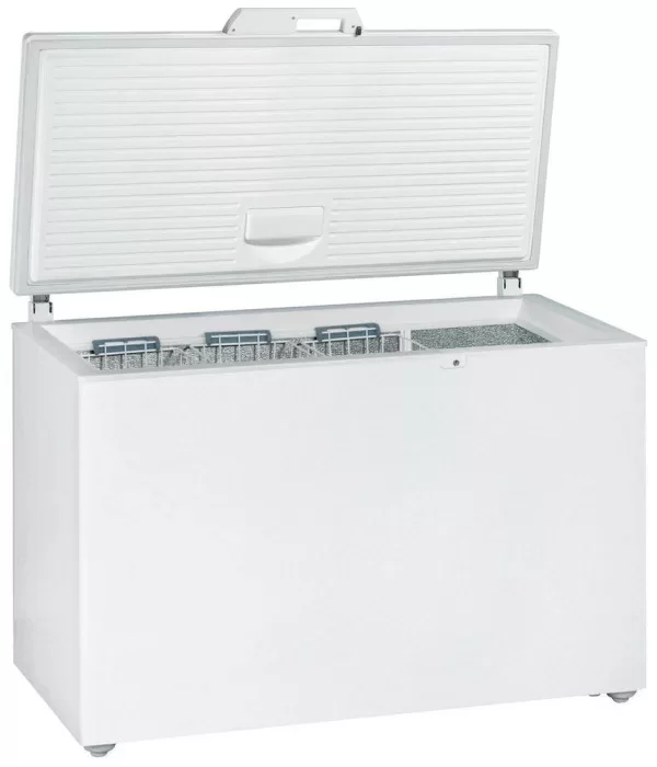 Модель белого цвета с глянцевым фасадом из серии SwingDesign имеет значительный объем 257 литров. Корпус высотой 91 см и шириной 128 см целиком изготовлен из стали. Электронная панель управления MagicEye класса Premium удобно расположена на ручке и может быть заблокирована от детей. При открывании крышки включается яркое внутреннее освещение, обеспечивающее отличный обзор. Производительность замораживания этого вместительного устройства достигает 25 кг продуктов в сутки. Минимальная температура в морозильной камере может составлять −18 °C. Гладкие стенки и скругленные углы камеры облегчают ее очистку. Для удобного размещения продуктов в комплект входят три подвесные металлические решетчатые корзины с пластиковым покрытием, предусмотрено место для установки еще семи корзин. Перед помещением в камеру большого количества свежих продуктов рекомендуется включать режим суперзамораживания SuperFrost с автоматическим отключением через 65 часов. Изоляционная панель поможет лучше сохранить холод при частом открывании дверцы. Модель относится к очень высокому классу энергопотребления A++. Уровень шума при нормальной работе прибора составит всего 39 дБ.
